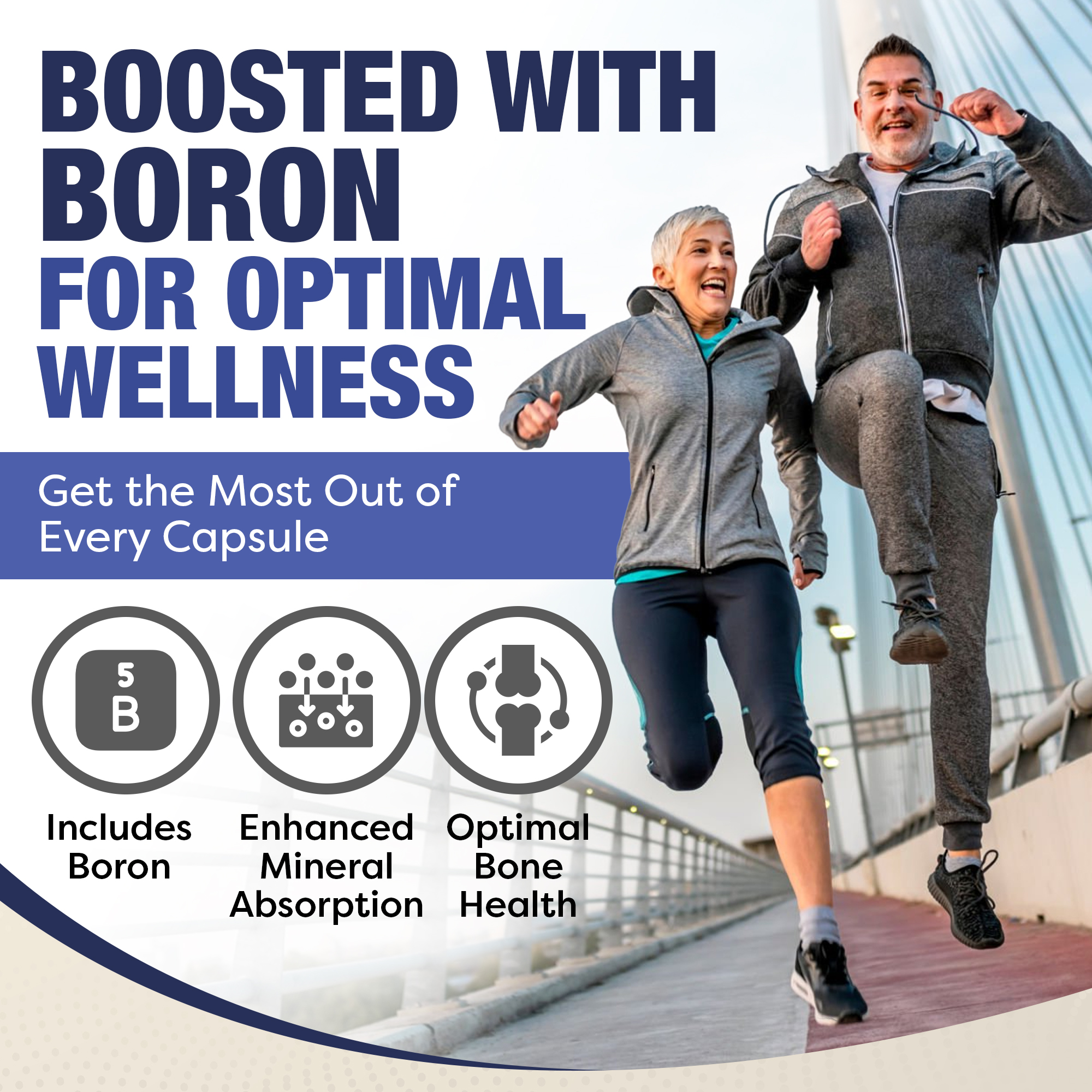 Without boron, the absorption of calcium can be limited and often under-utilized. Boron is an essential factor in facilitating the bone-building effects of key nutrients such as calcium, magnesium, and vitamin D.